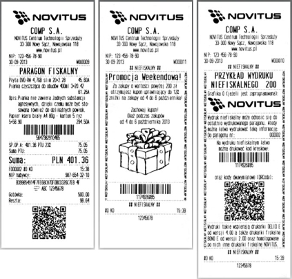 możliwość drukowania kodu QR jako oznaczenia paragonu oraz wystawiania takich kodów do każdego z wydruków niefiskalnych, których pula została rozszerzona (między innymi o formatkę faktury niefiskalnej wystawianej do paragonu fiskalnego);