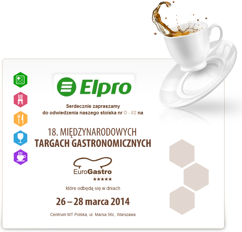 Eurogastro 2014 to forum wymiany doświadczeń, dyskusji i towarzyskich rozmów, to także możliwość zapoznania się z ofertą firmy Elpro prezentowaną na naszym stoisku. Na naszej ekspozycji zaprezentujemy asortyment sprzętu i oprogramowania, a także rozwiązań kompleksowych skierowanych przede wszystkim do placówek gastronomicznych.