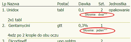 Recepta, poza innymi cechami, ma również dodrukowywaną ilość opakowań słownie.