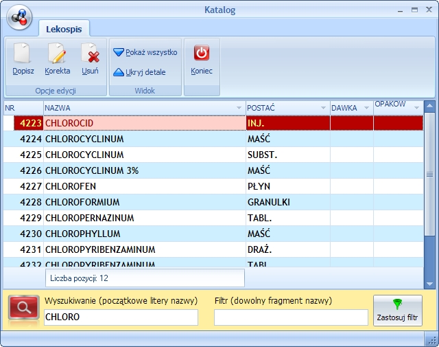 Lekospis pozwala na wyszukiwanie lub filtrowanie listy leków - obydwie opcje są bardzo efektywne.