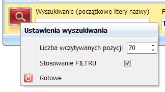 Ustawienia opcji wyszukiwania w lekospisie.