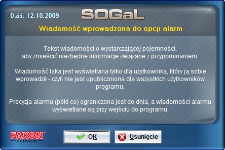 Okno opcji alarm.