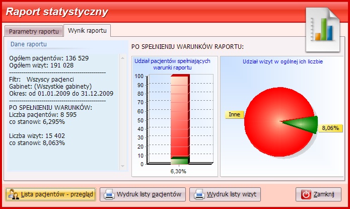 Okno wyników raportu statystycznego.