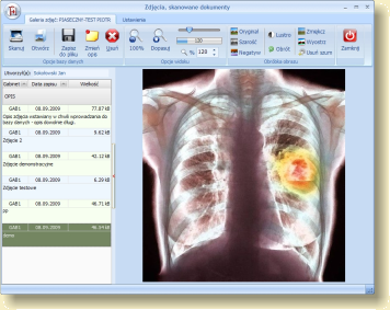 - możliwość gromadzenia, katalogowania i przeglądania zdjęć i dokumentów pobieranych wprost ze skanera lub wczytywanych z dowolnego pliku graficznego w formacie png, jpg, jpeg, bmp, ico, emf, wmf,