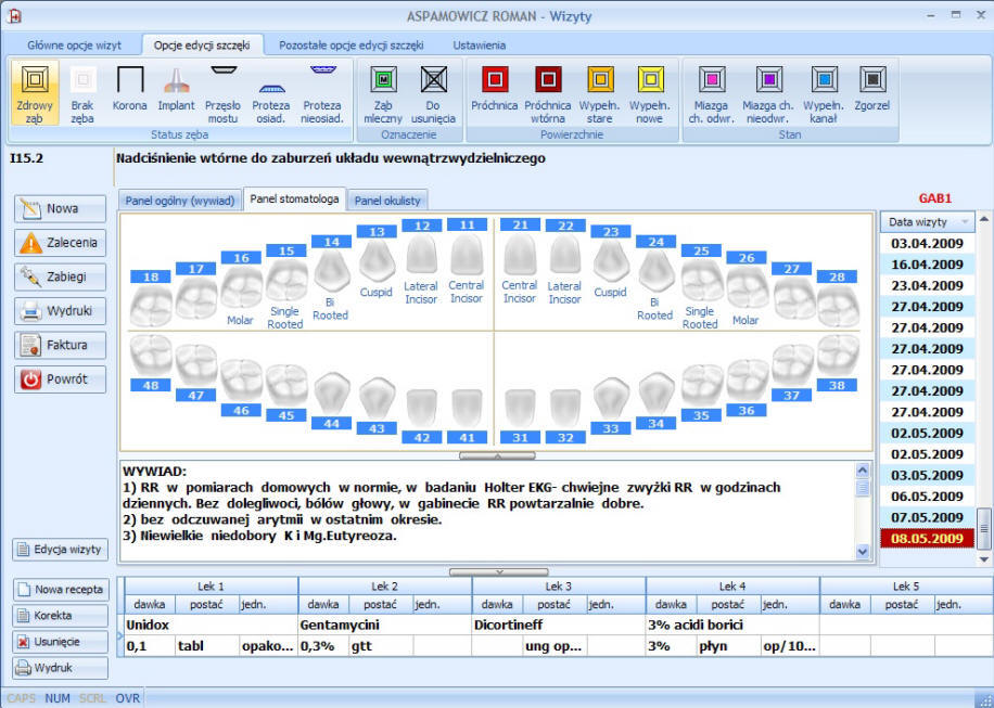 Okno wizyt z panelem dla stomatologów.