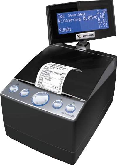 Wysoka wydajność, szybkość działania i cicha praca zapewniają wysoki komfort obsługi klienta. Dzięki optymalizacji wydruków i zastosowaniu jednego nowoczesnego, termicznego mechanizmu drukującego i rejestracji kopii wydruków na specjalnej karcie NovitusSD, drukarka DELIO PRIME E jest urządzeniem tanim w eksploatacji. DELIO PRIME E posiada wiele funkcji usprawniających działanie placówki handlowej. Duży, obrotowy (na życzenie podwyższony), czytelny, czteroliniowy wyświetlacz w kolorze niebieskim dokładnie wyświetla informacje o sprzedawanych towarach, kwotach, sumach do zapłaty oraz innych operacjach wykonywanych na drukarce fiskalnej.