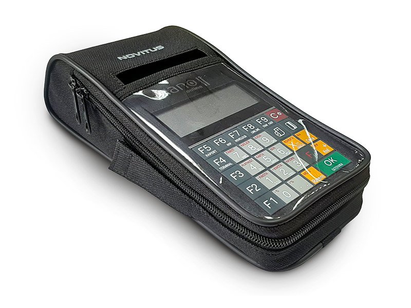 Zasuwany w około na zamek błyskawiczny. Ułatwia przenoszenie kasy, zabezpiecza przed uszkodzeniem, zabrudzeniem itp. Na wierzchu wytłoczone nazwa kasy NANO II Online oraz logo NOVITUS.