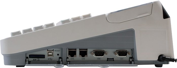 Wyposażenie kasy w 4 porty komunikacyjne umożliwiają współpracę z komputerem, czytnikiem kodów kreskowych, wagą oraz terminalem kart płatniczych.